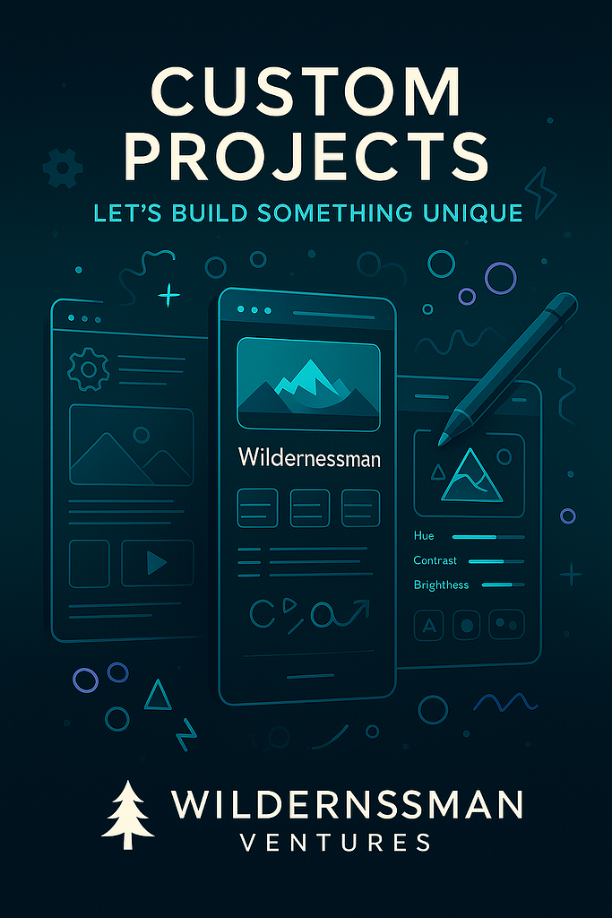 Custom websites built from the ground up with purpose and personality. Whether you’re starting from scratch or need a full redesign, I’ll bring your vision to life with clean code, responsive design, and a focus on speed, style, and function. Every site includes hosting on a wildernessmanventures.com subdomain (e.g., yoursite.wildernessmanventures.com) at no extra cost, helping you get online quickly while promoting my brand. Want your own domain? Upgrade to a custom domain for a one-time setup fee, and I’ll handle the rest. Plus, join my Discord, Facebook or Telegram community for ongoing support and tips on managing your site.